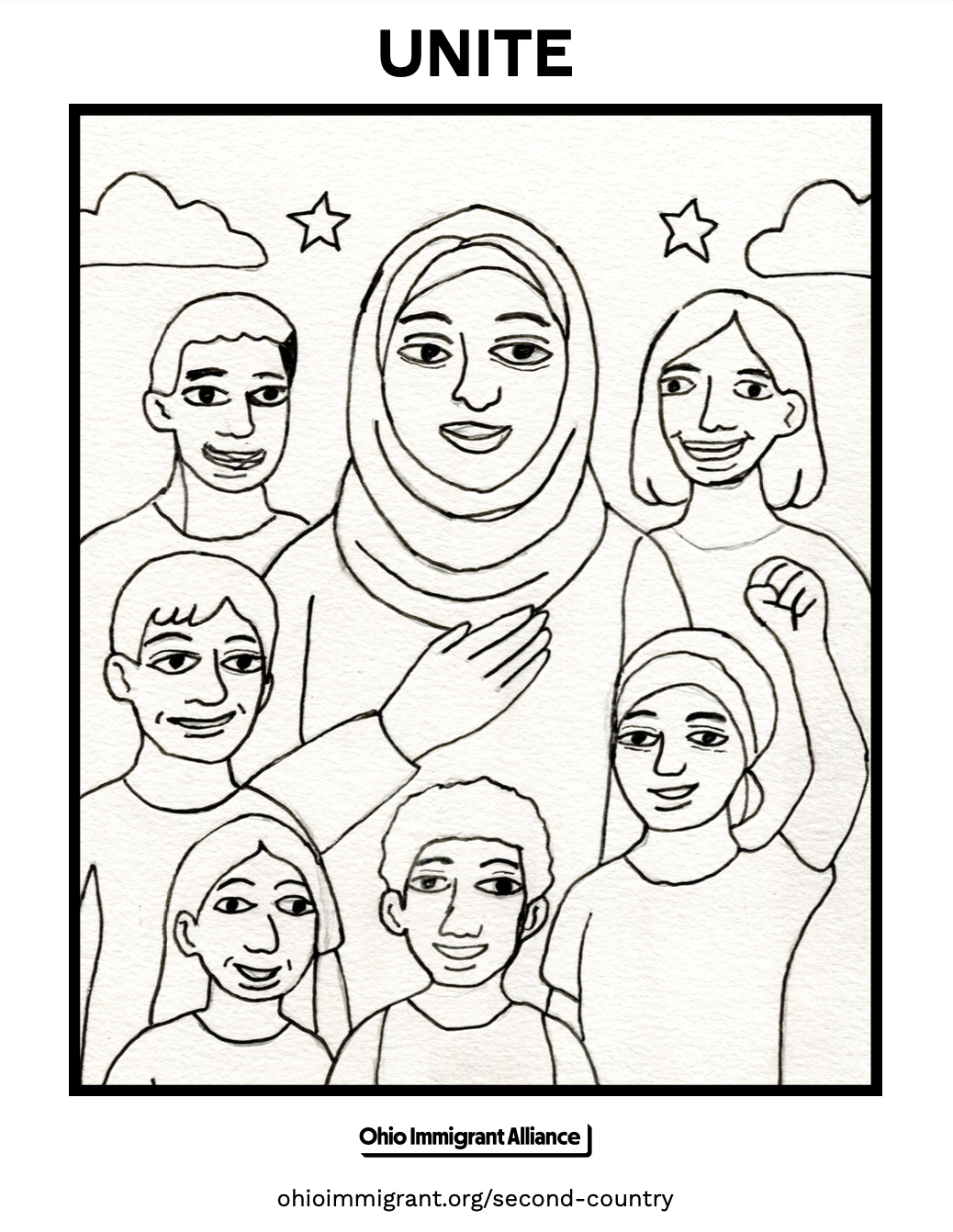 Colored a page from the book? Share it. Post your artwork on Instagram, Facebook, or TikTok with #OhioIsHome and help spread the message that migration is human and Ohio is home.