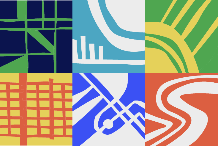 Close-up of a curved, red and black abstract design resembling a stylized winding road.